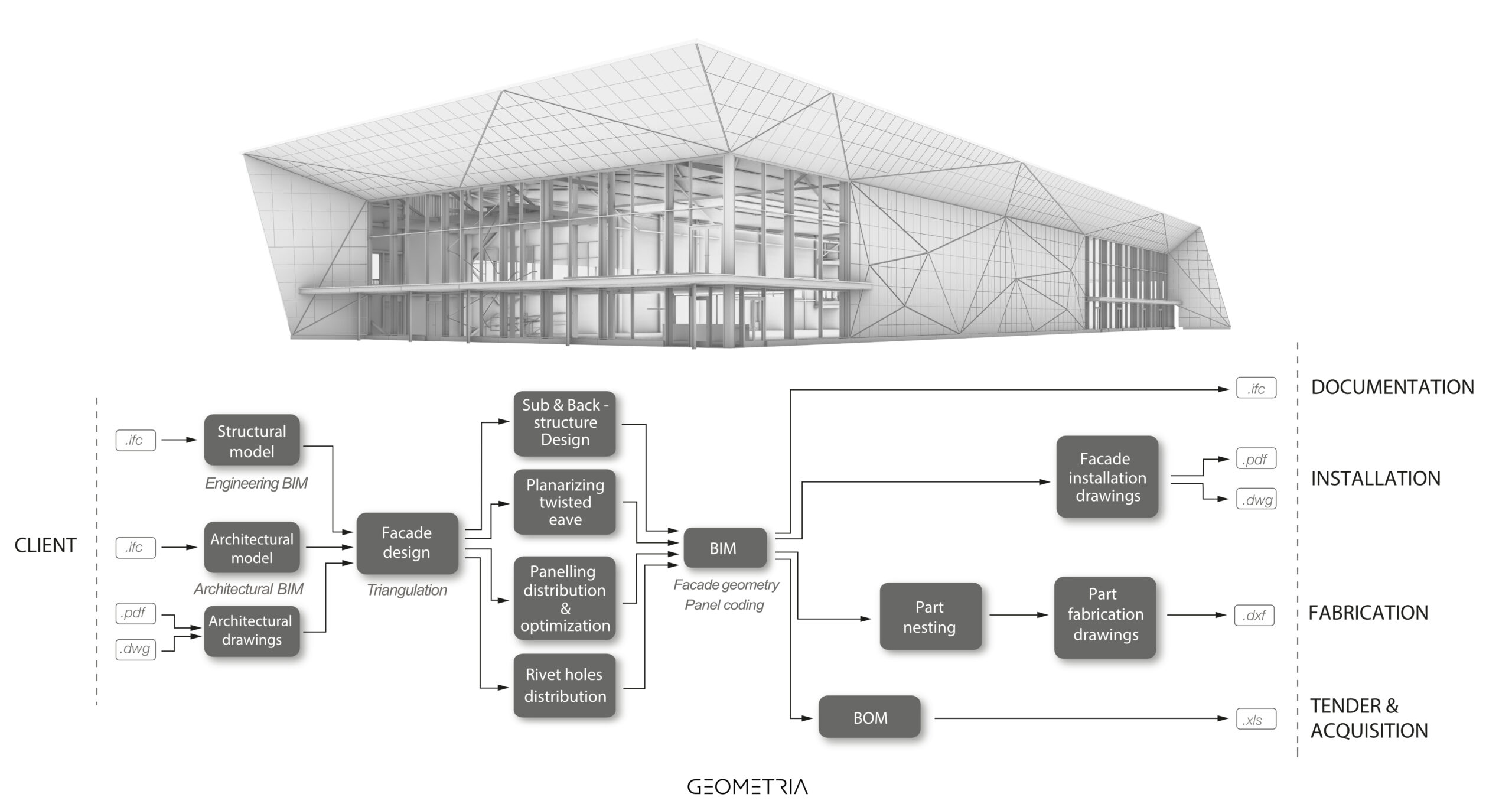 Geometria handled the façade optimization, fabrication modelling and planning for this project.