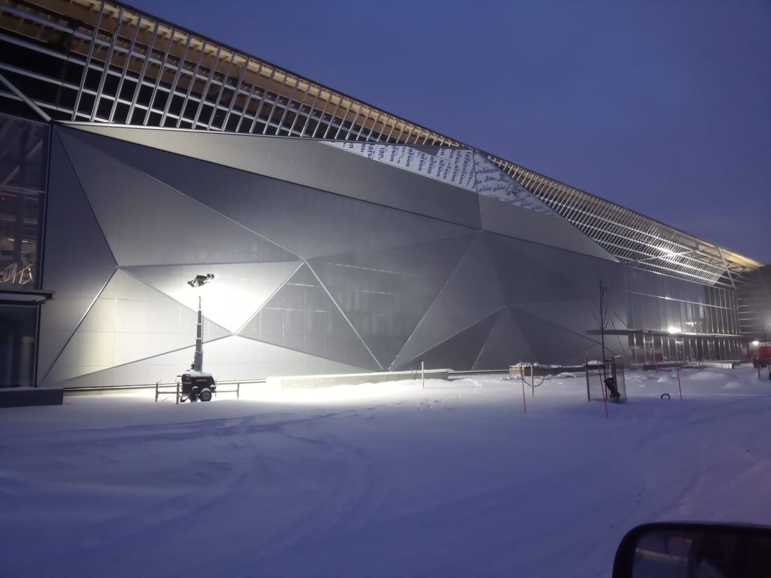 Our work started with estimating material quantities for procurement. We then divided and optimized the triangulated façade design, breaking it into panels using a 1200×1200 mm grid system – making sure each triangular section had the correct brushed aluminium finish orientation for the right visual effect.